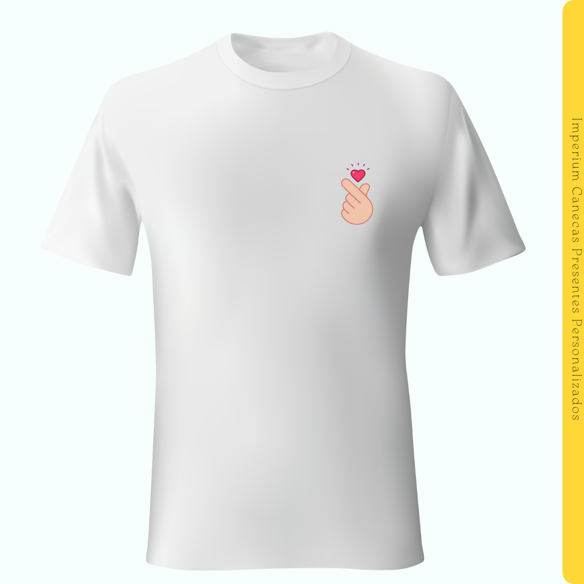 Mostre seu amor pela cultura coreana com nossa camiseta branca personalizada 'Korean Heart'. Ideal para quem é apaixonado pela Coreia do Sul, esta camiseta celebra o espírito e a estética únicos da cultura coreana com um design de coração que simboliza essa conexão especial.