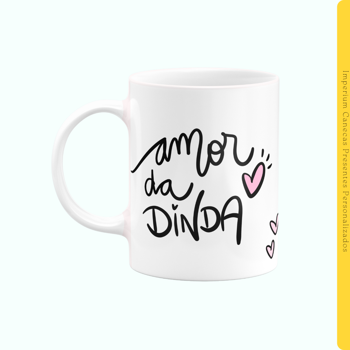 Surpreenda sua madrinha com nossa caneca de 325ml com a mensagem: Amor da Dinda. Feita em cerâmica de alta qualidade, essa caneca pode ser personalizada com uma foto especial, tornando o presente ainda mais significativo e cheio de emoção. Perfeita para momentos de café, chá ou chocolate quente, ela é uma linda forma de celebrar o vínculo único entre madrinha e afilhado(a).