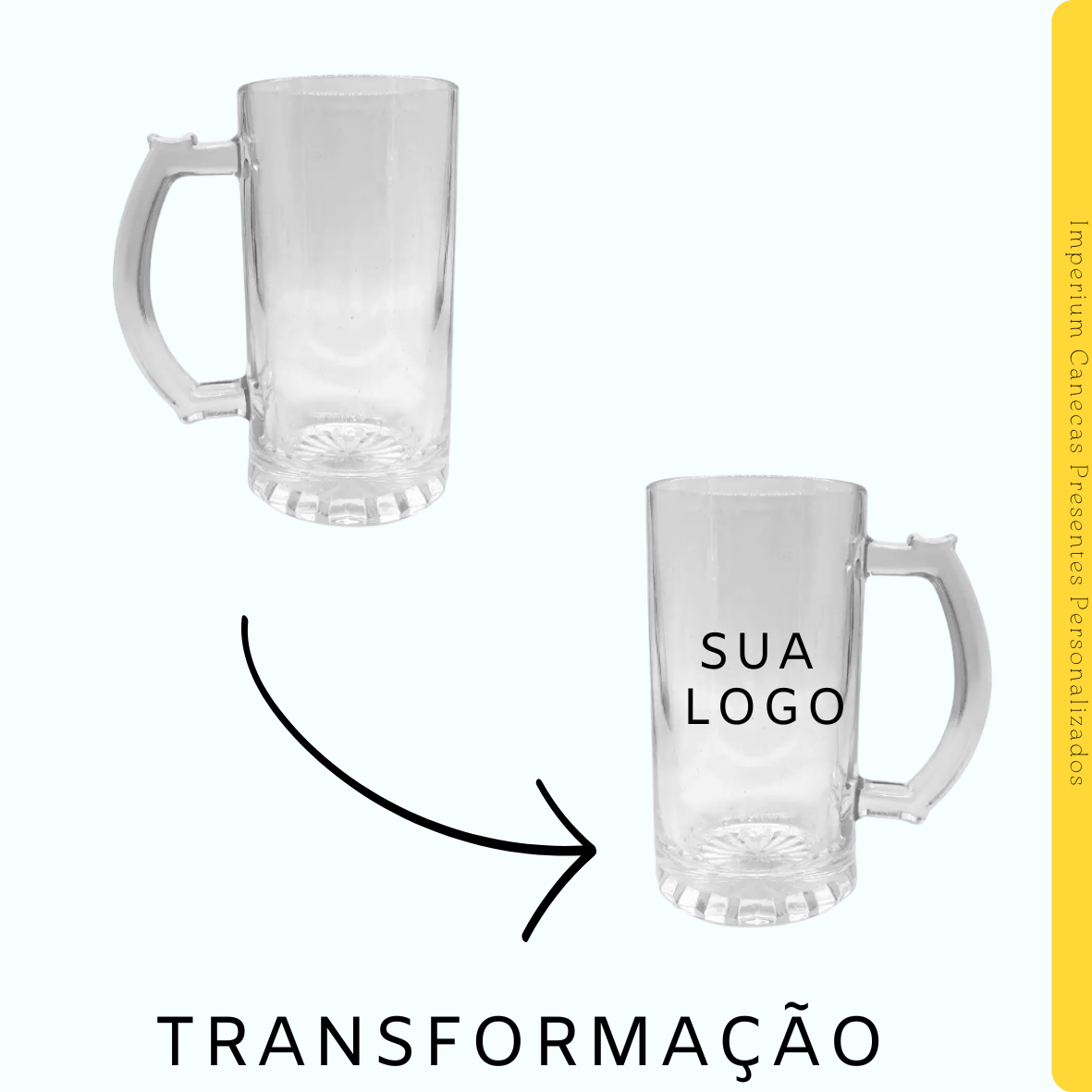 Brinde com estilo e personalidade com o Caneco de Chopp 460ml Personalizado! Feito em vidro resistente e de alta qualidade, esse caneco é perfeito para curtir aquele chopp gelado com a sua marca registrada.
